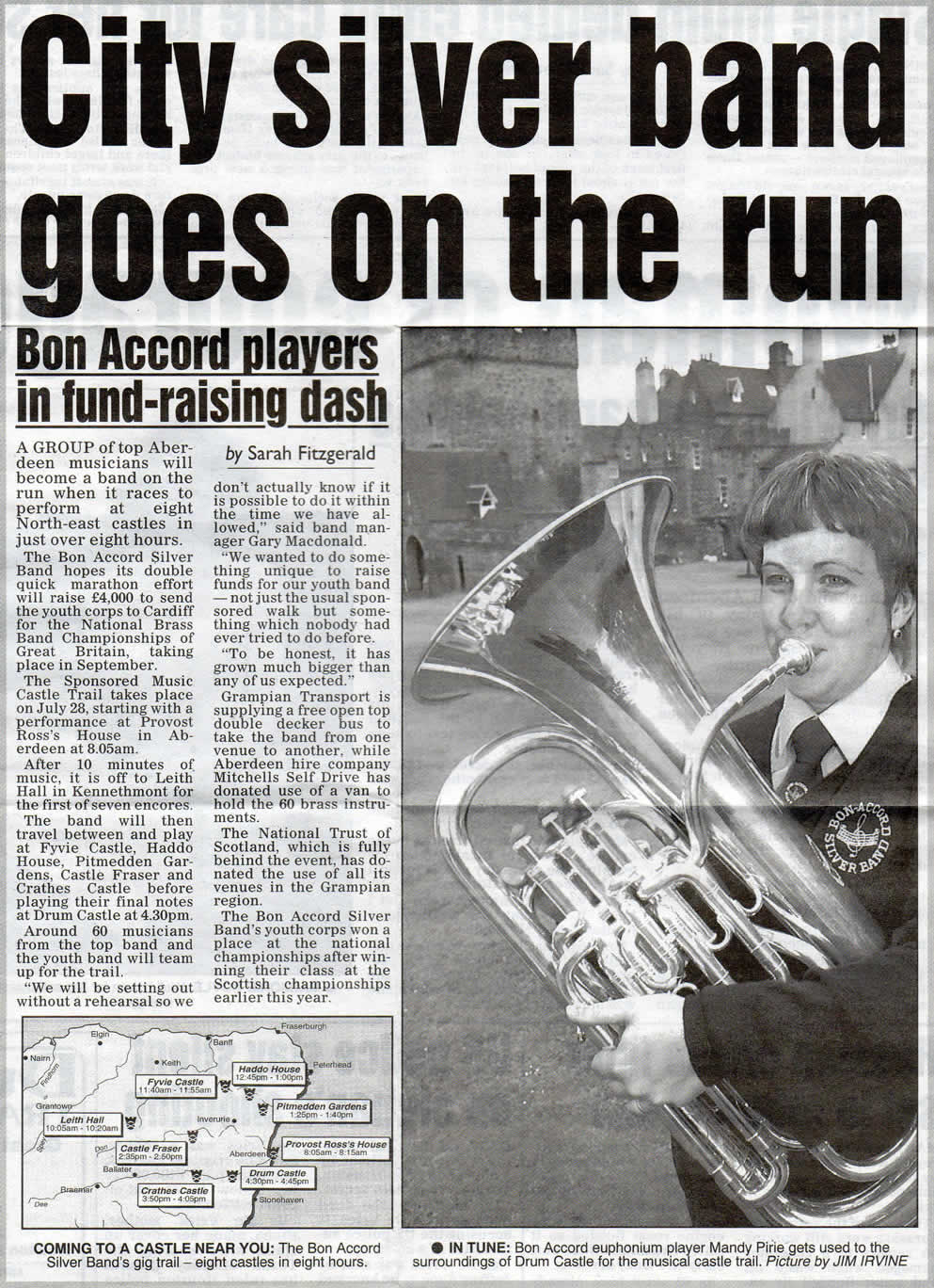 The band on the Castle Trail - 8 concerts at 8 castles in 8 hours - for sponsorship for the Bon-Accord Silver 'B' Band to attend the National Brass Band Championships in Cardiff in 2006
