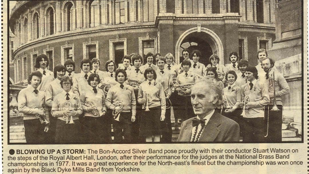 Bon-Accord Silver Band after playing in the Royal Albert Hall in 1977